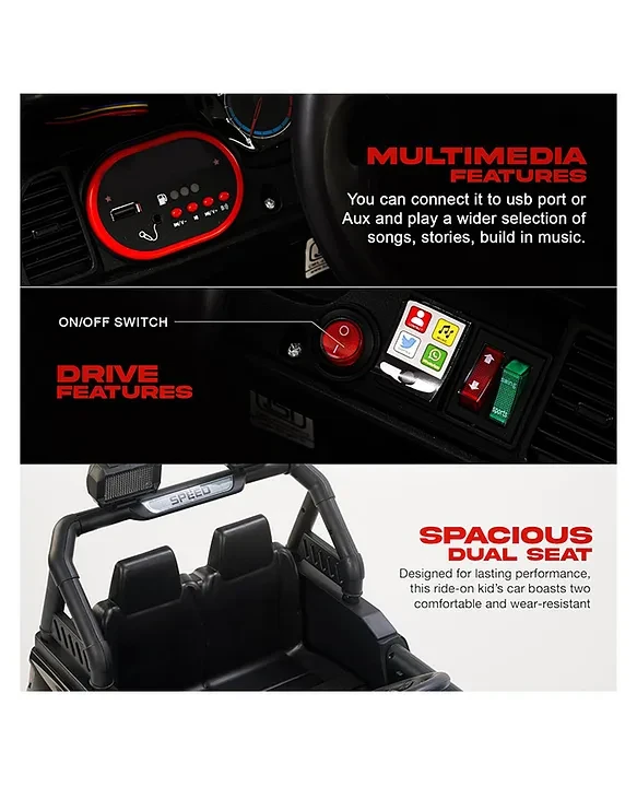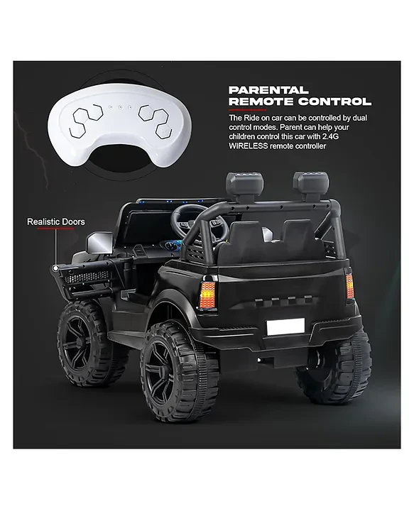Parent Handle - In their early years kid can sit in the jeep car and parents can control it through Bluetooth remote as kids grow they can ride it manually using foot accelerator